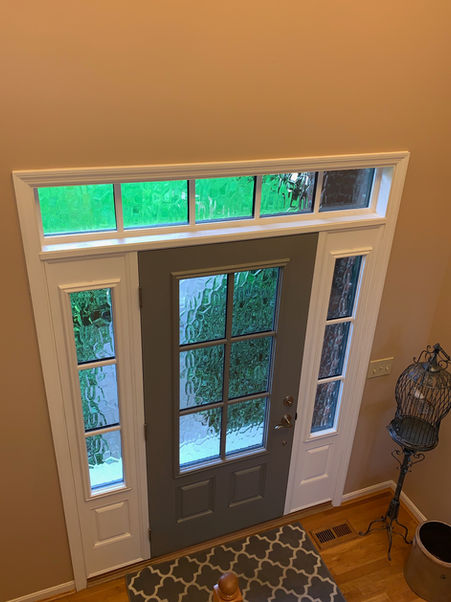 ODL's textured glass with simulated divided lites (SDLs) features a distinctive design where grey spacers or dividers are placed between the glass panes to create a simulated grid effect. This adds an authentic divided-lite appearance, offering the classic look of individual glass panes while maintaining the energy efficiency and ease of a single glass unit. The textured glass ensures privacy and diffuses light beautifully into your home. This combination of functional grey dividers and elegant textured glass makes these ODL SDLs a perfect choice for adding both character and contemporary flair to your entryway.